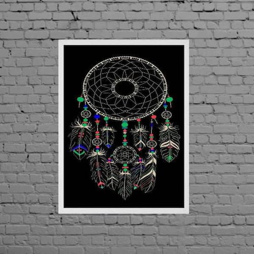 Quadro Decorativo Apanhador De Sonhos 24X18Cm Moldura Branca