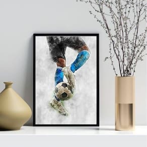 Quadro decorativo aquarela futebol- azul 33x24cm Moldura: madeira preta Informações do produto tire todas as suas dúvidas no descritivo abaixo: decoração para quarto, sala, cozinha, escritório, área gourmet e muito mais. Chega de paredes vazias medidas - cada peça tem 33x24cm a4 . Material do papel - papel fotográfico brilhante de altíssima resolução acabamento - todos os quadros são acompanhados de uma película de acetato para proteção da imagem. - os quadros são embalados de forma segura com plástico bolha com camada dupla de acordo com o tamanho dos quadros. Garantia - garantia de 3 meses. Meu quadro chegou. Como posso fixá-lo Você precisa apenas de um martelo e um prego, pois os quadros já vão acompanhados de penduradores. Esta é a forma mais indicada. Caso prefira, você pode utilizar uma fita dupla face neste caso, sugerimos de alta qualidade para evitar que descole e seu quadro caia . Como posso limpar meu quadro A limpeza é feita como um móvel comum da sua casa. Apenas um pano seco ou espanador são suficientes para tal Ean: 7892525241913