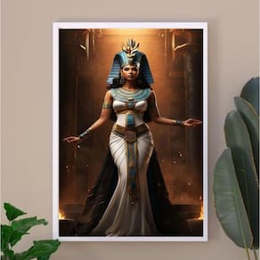 Quadro decorativo arquétipo cleópatra negra 24x18cm Moldura: madeira branca Informações do produto tire todas as suas dúvidas no descritivo abaixo: decoração para quarto, sala, cozinha, escritório, área gourmet e muito mais. Chega de paredes vazias medidas - cada peça tem 24x18cm a5 . Material do papel - papel fotográfico brilhante de altíssima resolução acabamento - todos os quadros são acompanhados de uma película de acetato para proteção da imagem. - os quadros são embalados de forma segura com plástico bolha com camada dupla de acordo com o tamanho dos quadros. Garantia - garantia de 3 meses. Meu quadro chegou. Como posso fixá-lo Você precisa apenas de um martelo e um prego, pois os quadros já vão acompanhados de penduradores. Esta é a forma mais indicada. Caso prefira, você pode utilizar uma fita dupla face neste caso, sugerimos de alta qualidade para evitar que descole e seu quadro caia . Como posso limpar meu quadro A limpeza é feita como um móvel comum da sua casa. Apenas um pano seco ou espanador são suficientes para tal