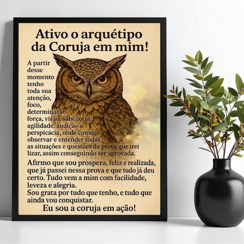 Quadro decorativo arquétipo coruja ativação 33x24cm Cor: moldura preta Informações do produto tire todas as suas dúvidas no descritivo abaixo: decoração para quarto, sala, cozinha, escritório, área gourmet e muito mais. Chega de paredes vazias medidas - cada peça tem 33x24cm a4 . Material do papel - papel fotográfico brilhante de altíssima resolução acabamento - todos os quadros são acompanhados de uma película de acetato para proteção da imagem. - os quadros são embalados de forma segura com plástico bolha com camada dupla de acordo com o tamanho dos quadros. - de 3 meses. Meu quadro chegou. Como posso fixá-lo Você precisa apenas de um martelo e um prego, pois os quadros já vão acompanhados de penduradores. Esta é a forma mais indicada. Caso prefira, você pode utilizar uma fita dupla face neste caso, sugerimos de alta qualidade para evitar que descole e seu quadro caia . Como posso limpar meu quadro A limpeza é feita como um móvel comum da sua casa. Apenas um pano seco ou espanador são suficientes para tal Marca: Não Informado Ean: 7901039775163