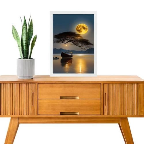 Quadro decorativo arte barco rio lua cheia 45x34cm Cor: moldura branca Informações do produto tire todas as suas dúvidas no descritivo abaixo: decoração para quarto, sala, cozinha, escritório, área gourmet e muito mais. Chega de paredes vazias. Medidas - cada peça tem 45x34cm a3 . Material do papel - papel fotográfico brilhante de altíssima resolução acabamento - todos os quadros são acompanhados de uma película de acetato para proteção da imagem. - os quadros são embalados de forma segura com plástico bolha com camada dupla de acordo com o tamanho dos quadros. - de 3 meses. Meu quadro chegou. Como posso fixá-lo Você precisa apenas de um martelo e um prego, pois os quadros já vão acompanhados de penduradores. Esta é a forma mais indicada. Caso prefira, você pode utilizar uma fita dupla face neste caso, sugerimos de alta qualidade para evitar que descole e seu quadro caia . Como posso limpar meu quadro A limpeza é feita como um móvel comum da sua casa. Apenas um pano seco ou espanador são suficientes para tal