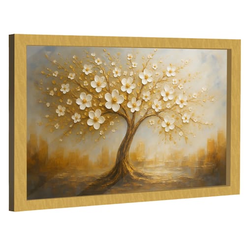 Quadro Decorativo Árvore Abstrata da Vida Moldura Dourada e Vidro - 84x54cm -