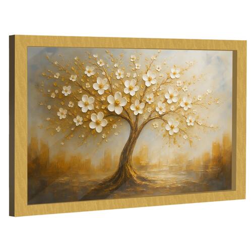 Quadro Decorativo Árvore Abstrata da Vida Moldura Dourada e Vidro - 150x100cm -