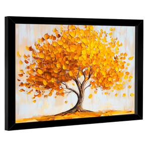 Quadro Decorativo Árvore da Prosperidade Amarela Moldura Dourada - 84x54cm -