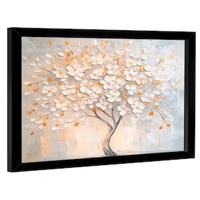 Quadro Decorativo Árvore de Flores Brancas Moldura Preta - 118x78cm -