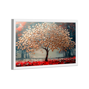 Quadro Decorativo Árvore Dourada com Lindas Folhas Moldura Dourada - 118x78cm -