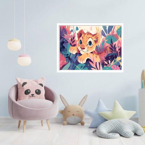 Quadro decorativo baby leão floresta - 50x70cm Cor: moldura preta Informações do produto tire todas as suas dúvidas no descritivo abaixo: decoração para quarto, sala, cozinha, escritório, área gourmet e muito mais. Chega de paredes vazias medidas - cada peça tem 70x50cm . Material do papel - papel fotográfico brilhante de altíssima resolução acabamento - todos os quadros são acompanhados de vidro para proteção da imagem. - moldura em madeira maciça na cor preta ou branca conforme produto escolhido e pendurador. - os quadros são embalados de forma segura com plástico bolha com camada dupla de acordo com o tamanho dos quadros. - de 3 meses. Meu quadro chegou. Como posso fixá-lo Você precisa apenas de um martelo e um prego, pois os quadros já vão acompanhados de penduradores. Esta é a forma mais indicada. Como posso limpar meu quadro A limpeza é feita como um móvel comum da sua casa. Apenas um pano seco ou espanador são suficientes para tal