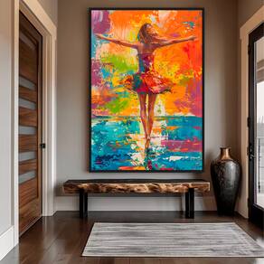 Quadro Decorativo Bailarina Estilo Pintura Moldura Preta e Vidro - 118x78cm -