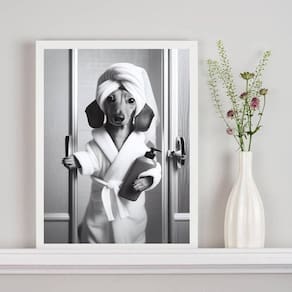 Quadro decorativo de banheiro - cachorrinha dachshund 24x18cm Cor: moldura branca Informações do produto tire todas as suas dúvidas no descritivo abaixo: decoração para quarto, sala, cozinha, escritório, área gourmet e muito mais. Chega de paredes vazias medidas - cada peça tem 24x18cm a5 . Material do papel - papel fotográfico brilhante de altíssima resolução acabamento - todos os quadros são acompanhados de uma película de acetato para proteção da imagem. - os quadros são embalados de forma segura com plástico bolha com camada dupla de acordo com o tamanho dos quadros. - de 3 meses. Meu quadro chegou. Como posso fixá-lo Você precisa apenas de um martelo e um prego, pois os quadros já vão acompanhados de penduradores. Esta é a forma mais indicada. Caso prefira, você pode utilizar uma fita dupla face neste caso, sugerimos de alta qualidade para evitar que descole e seu quadro caia . Como posso limpar meu quadro A limpeza é feita como um móvel comum da sua casa. Apenas um pano seco ou espanador são suficientes para tal