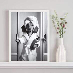 Quadro decorativo de banheiro - cachorrinha dachshund 45x34cm Cor: moldura branca Informações do produto tire todas as suas dúvidas no descritivo abaixo: decoração para quarto, sala, cozinha, escritório, área gourmet e muito mais. Chega de paredes vazias. Medidas - cada peça tem 45x34cm a3 . Material do papel - papel fotográfico brilhante de altíssima resolução acabamento - todos os quadros são acompanhados de uma película de acetato para proteção da imagem. - os quadros são embalados de forma segura com plástico bolha com camada dupla de acordo com o tamanho dos quadros. - de 3 meses. Meu quadro chegou. Como posso fixá-lo Você precisa apenas de um martelo e um prego, pois os quadros já vão acompanhados de penduradores. Esta é a forma mais indicada. Caso prefira, você pode utilizar uma fita dupla face neste caso, sugerimos de alta qualidade para evitar que descole e seu quadro caia . Como posso limpar meu quadro A limpeza é feita como um móvel comum da sua casa. Apenas um pano seco ou espanador são suficientes para tal Ean: 7901039754038