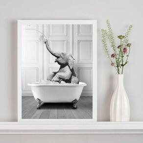 Quadro decorativo banheiro- elefante banheira 33x24cm Moldura: madeira branca Informações do produto tire todas as suas dúvidas no descritivo abaixo: decoração para quarto, sala, cozinha, escritório, área gourmet e muito mais. Chega de paredes vazias medidas - cada peça tem 33x24cm a4 . Material do papel - papel fotográfico brilhante de altíssima resolução acabamento - todos os quadros são acompanhados de uma película de acetato para proteção da imagem. - os quadros são embalados de forma segura com plástico bolha com camada dupla de acordo com o tamanho dos quadros. Garantia - garantia de 3 meses. Meu quadro chegou. Como posso fixá-lo Você precisa apenas de um martelo e um prego, pois os quadros já vão acompanhados de penduradores. Esta é a forma mais indicada. Caso prefira, você pode utilizar uma fita dupla face neste caso, sugerimos de alta qualidade para evitar que descole e seu quadro caia . Como posso limpar meu quadro A limpeza é feita como um móvel comum da sua casa. Apenas um pano seco ou espanador são suficientes para tal