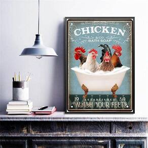 Quadro decorativo banheiro galinhas 45x34cm Moldura: madeira branca Informações do produto tire todas as suas dúvidas no descritivo abaixo: decoração para quarto, sala, cozinha, escritório, área gourmet e muito mais. Chega de paredes vazias. Medidas - cada peça tem 45x34cm a3 . Material do papel - papel fotográfico brilhante de altíssima resolução acabamento - todos os quadros são acompanhados de uma película de acetato para proteção da imagem. - os quadros são embalados de forma segura com plástico bolha com camada dupla de acordo com o tamanho dos quadros. Garantia - garantia de 3 meses. Meu quadro chegou. Como posso fixá-lo Você precisa apenas de um martelo e um prego, pois os quadros já vão acompanhados de penduradores. Esta é a forma mais indicada. Caso prefira, você pode utilizar uma fita dupla face neste caso, sugerimos de alta qualidade para evitar que descole e seu quadro caia . Como posso limpar meu quadro A limpeza é feita como um móvel comum da sua casa. Apenas um pano seco ou espanador são suficientes para tal
