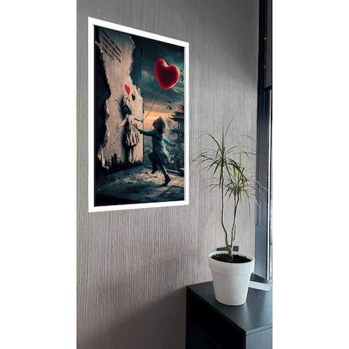 Quadro decorativo banksy menina balão - 70x50cm Cor: moldura branca Informações do produto tire todas as suas dúvidas no descritivo abaixo: decoração para quarto, sala, cozinha, escritório, área gourmet e muito mais. Chega de paredes vazias medidas - cada peça tem 70x50cm . Material do papel - papel fotográfico brilhante de altíssima resolução acabamento - todos os quadros são acompanhados de vidro para proteção da imagem. - moldura em madeira maciça na cor preta ou branca conforme produto escolhido e pendurador. - os quadros são embalados de forma segura com plástico bolha com camada dupla de acordo com o tamanho dos quadros. - de 3 meses. Meu quadro chegou. Como posso fixá-lo Você precisa apenas de um martelo e um prego, pois os quadros já vão acompanhados de penduradores. Esta é a forma mais indicada. Como posso limpar meu quadro A limpeza é feita como um móvel comum da sua casa. Apenas um pano seco ou espanador são suficientes para tal Marca: Não Informado Ean: 7901039772117