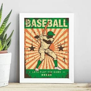Quadro decorativo baseball retrô 45x34cm Moldura: madeira branca Informações do produto tire todas as suas dúvidas no descritivo abaixo: decoração para quarto, sala, cozinha, escritório, área gourmet e muito mais. Chega de paredes vazias. Medidas - cada peça tem 45x34cm a3 . Material do papel - papel fotográfico brilhante de altíssima resolução acabamento - todos os quadros são acompanhados de uma película de acetato para proteção da imagem. - os quadros são embalados de forma segura com plástico bolha com camada dupla de acordo com o tamanho dos quadros. Garantia - garantia de 3 meses. Meu quadro chegou. Como posso fixá-lo Você precisa apenas de um martelo e um prego, pois os quadros já vão acompanhados de penduradores. Esta é a forma mais indicada. Caso prefira, você pode utilizar uma fita dupla face neste caso, sugerimos de alta qualidade para evitar que descole e seu quadro caia . Como posso limpar meu quadro A limpeza é feita como um móvel comum da sua casa. Apenas um pano seco ou espanador são suficientes para tal
