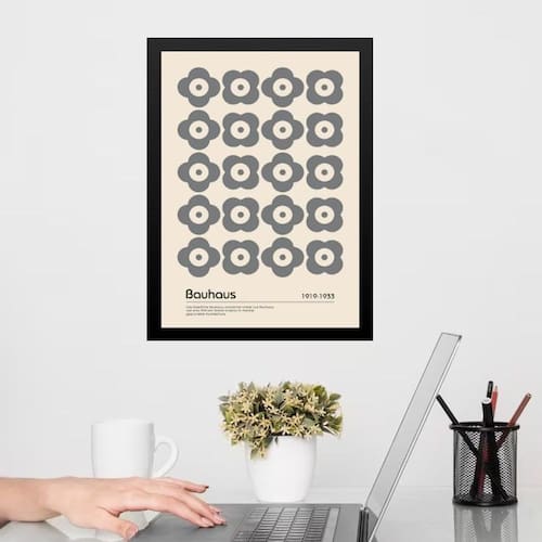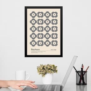 Quadro decorativo bauhaus cinza floral 33x24cm Cor: moldura preta Informações do produto tire todas as suas dúvidas no descritivo abaixo: decoração para quarto, sala, cozinha, escritório, área gourmet e muito mais. Chega de paredes vazias medidas - cada peça tem 33x24cm a4 . Material do papel - papel fotográfico brilhante de altíssima resolução acabamento - todos os quadros são acompanhados de uma película de acetato para proteção da imagem. - os quadros são embalados de forma segura com plástico bolha com camada dupla de acordo com o tamanho dos quadros. - de 3 meses. Meu quadro chegou. Como posso fixá-lo Você precisa apenas de um martelo e um prego, pois os quadros já vão acompanhados de penduradores. Esta é a forma mais indicada. Caso prefira, você pode utilizar uma fita dupla face neste caso, sugerimos de alta qualidade para evitar que descole e seu quadro caia . Como posso limpar meu quadro A limpeza é feita como um móvel comum da sua casa. Apenas um pano seco ou espanador são suficientes para tal