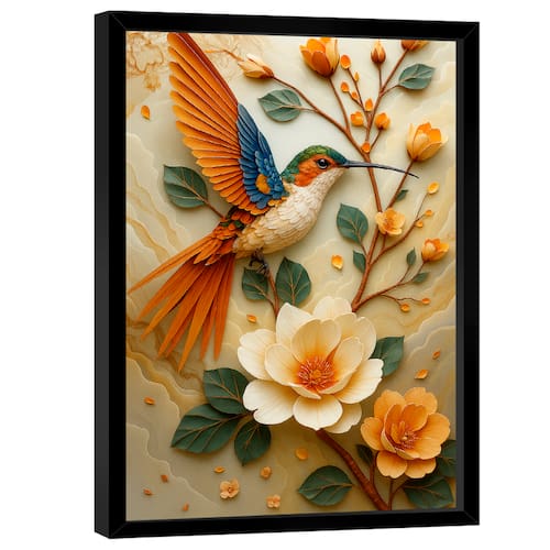Quadro Decorativo Beija-Flor Moldura Preta - 118x78cm -
