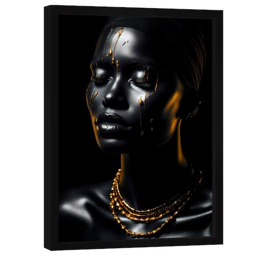 Quadro Decorativo Beleza Africana Moldura Preta - 84x54cm -