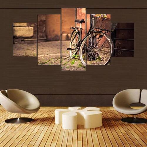 Deixe seu ambiente mais agradável com o Quadro Decorativo Bicicleta Paisagem Rústica. O quadro além de ser muito bonito é de alta qualidade, fabricado em adesivo com uma excelente impressão. Os quadros decorativos são grandes aliados quando o assunto é decoração, suas cores irão trazer mais sofisticação para a sua sala, quarto, escritório, ou qualquer outro ambiente. O quadro é composto por 5 peças que se complementam, para deixá-los perfeitos em sua parede deixe um espaço com cerca de 1cm entre uma peça e outra, assim as imagens irão se complementar e você terá um resultado fantástico. Composição: 05 Quadros com tamanho total de 115 x 60 cm Peças menores: 02 unidades - 22 x 35 cm Peças médias: 02 unidades - 22 x 50 cm Peça central: 01 unidade - 22 x 60 cm Espaçamento entre as peças: 01 cm Especificações Técnicas: Produto: Quadro decorativo Quantidade: 5 peças Material: Adesivo Brilhante Tamanho total CxA : 115 x 60 cm Madeira: 6mm Cor: Marrom Modelo: Bicicleta Paisagem Rústica Instalação: Fita Dupla Face Conteúdo da embalagem: 1 quadro composto por 5 peças Marca: KYME Ean: 8991523896633