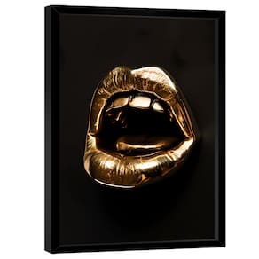 Quadro Decorativo Boca Dourada 3D Moldura Dourada - 118x78cm -