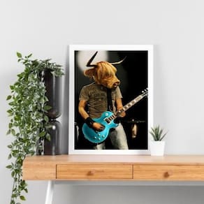 Quadro decorativo boi roqueiro 33x24cm - com vidro Cor: moldura branca Informações do produto tire todas as suas dúvidas no descritivo abaixo: decoração para quarto, sala, cozinha, escritório, área gourmet e muito mais. Chega de paredes vazias medidas - cada peça tem 33x24cm a4 . Material do papel - papel fotográfico brilhante de altíssima resolução acabamento - todos os quadros são acompanhados de vidro para proteção da imagem. - moldura em madeira maciça na cor preta ou branca conforme produto escolhido e pendurador . - os quadros são embalados de forma segura com plástico bolha com camada dupla de acordo com o tamanho dos quadros. - de 3 meses. Meu quadro chegou. Como posso fixá-lo Você precisa apenas de um martelo e um prego, pois os quadros já vão acompanhados de penduradores. Esta é a forma mais indicada. Como posso limpar meu quadro A limpeza é feita como um móvel comum da sua casa. Apenas um pano seco ou espanador são suficientes para tal Ean: 7891234537843