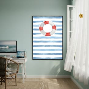 Quadro Decorativo Boia SalvaVidas Fundo Listrado-70x50cm