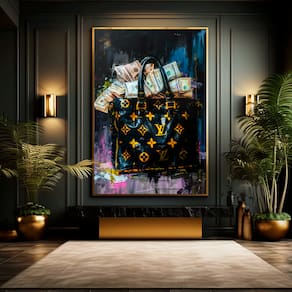 Quadro Decorativo Bolsa de Dinheiro Moldura Dourada - 84x54cm -
