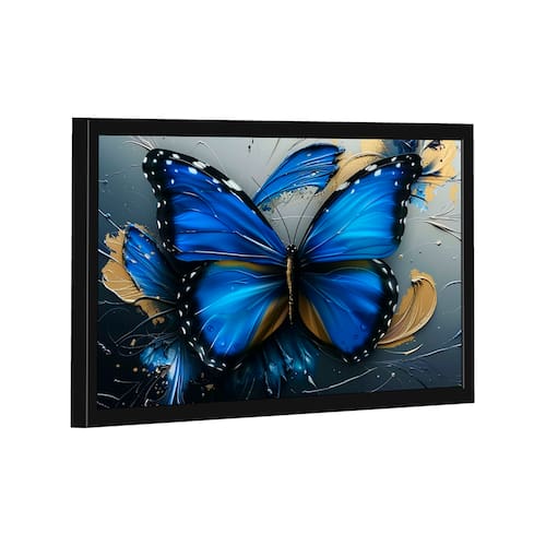 Quadro Decorativo Borboleta Azul Moldura Preta - 60x40cm -