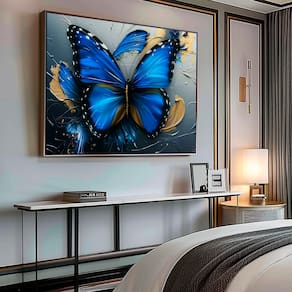 Quadro Decorativo Borboleta Azul Moldura Branca - 60x40cm -