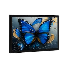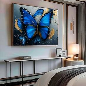 Quadro Decorativo Borboleta Azul Moldura Preta - 84x54cm -