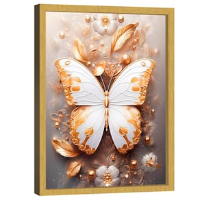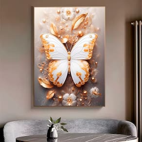 Quadro Decorativo Borboleta e Enfeites Moldura Preta - 60x40cm -