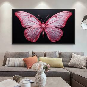 Quadro Borboleta Rosa -- BR ARTES Moldura Preta e Vidro - Ultra Grande 150x100 -
