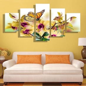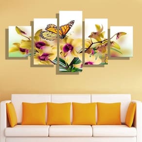 Quadro Decorativo Borboletas 5 peças em tecido