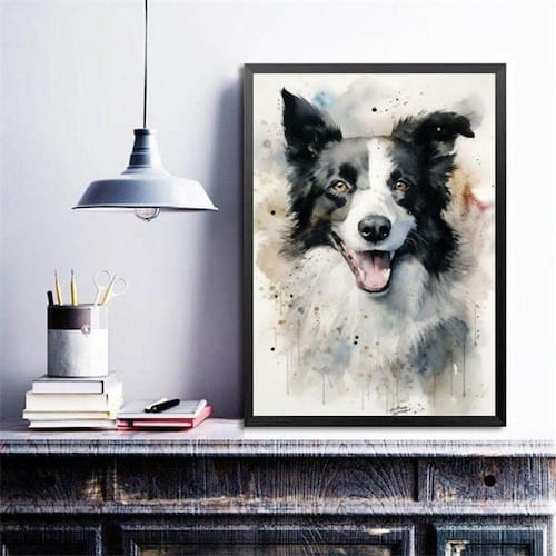 Quadro decorativo border colie aquarela 33x24cm Moldura: madeira branca Informações do produto tire todas as suas dúvidas no descritivo abaixo: decoração para quarto, sala, cozinha, escritório, área gourmet e muito mais. Chega de paredes vazias medidas - cada peça tem 33x24cm a4 . Material do papel - papel fotográfico brilhante de altíssima resolução acabamento - todos os quadros são acompanhados de uma película de acetato para proteção da imagem. - os quadros são embalados de forma segura com plástico bolha com camada dupla de acordo com o tamanho dos quadros. Garantia - garantia de 3 meses. Meu quadro chegou. Como posso fixá-lo Você precisa apenas de um martelo e um prego, pois os quadros já vão acompanhados de penduradores. Esta é a forma mais indicada. Caso prefira, você pode utilizar uma fita dupla face neste caso, sugerimos de alta qualidade para evitar que descole e seu quadro caia . Como posso limpar meu quadro A limpeza é feita como um móvel comum da sua casa. Apenas um pano seco ou espanador são suficientes para tal Ean: 7899544773302