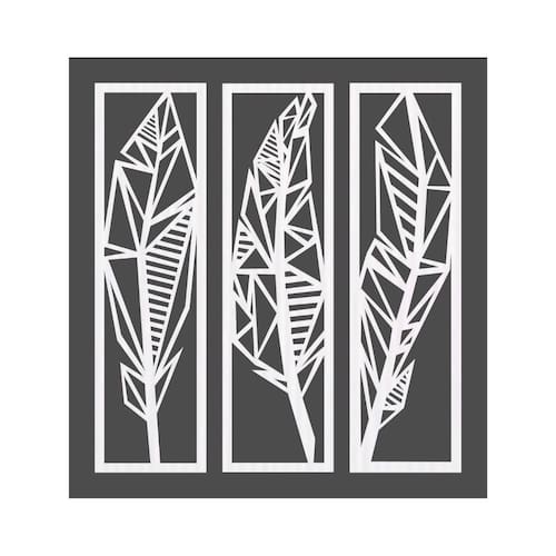 Quadro Decorativo Branco Mdf Folhas De Bananeira 40X20Cm