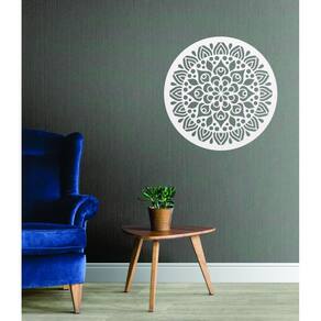 Quadro Decorativo Branco Mdf Mandala Floral 40X20Cm