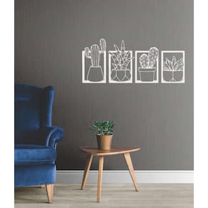 Quadro Decorativo Branco Mdf Quadri Plantas 40X20Cm