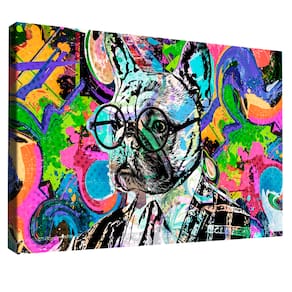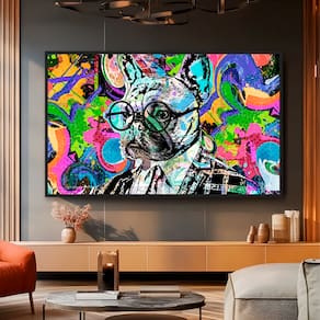 Quadro Decorativo Buldogue Pop Art Moldura Branca - 84x54cm -