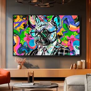 Quadro Decorativo Buldogue Pop Art Moldura Preta - 84x54cm -