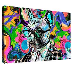 Quadro Decorativo Buldogue Pop Art Moldura Preta - 60x40cm -