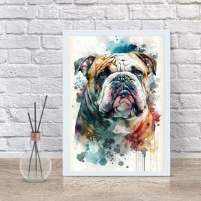 Quadro decorativo bulldog inglês aquarela 45x34cm - com vidro Moldura: madeira branca Informações do produto tire todas as suas dúvidas no descritivo abaixo: decoração para quarto, sala, cozinha, escritório, área gourmet e muito mais. Chega de paredes vazias medidas - cada peça tem 45x34cm a3 . Material do papel - papel fotográfico brilhante de altíssima resolução acabamento - todos os quadros são acompanhados de vidro para proteção da imagem. - moldura em madeira maciça na cor preta ou branca conforme produto escolhido e pendurador . - os quadros são embalados de forma segura com plástico bolha com camada dupla de acordo com o tamanho dos quadros. Garantia - garantia de 3 meses. Meu quadro chegou. Como posso fixá-lo Você precisa apenas de um martelo e um prego, pois os quadros já vão acompanhados de penduradores. Esta é a forma mais indicada. Como posso limpar meu quadro A limpeza é feita como um móvel comum da sua casa. Apenas um pano seco ou espanador são suficientes para tal Ean: 7892045803127