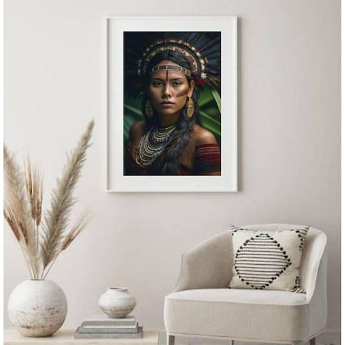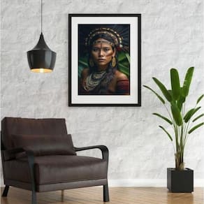 Quadro decorativo cabocla jurema - 60x48cm Moldura: madeira preta Informações do produto tire todas as suas dúvidas no descritivo abaixo: decoração para quarto, sala, cozinha, escritório, área gourmet e muito mais. Chega de paredes vazias medidas - cada peça tem 60x48cm . Material do papel - papel fotográfico brilhante de altíssima resolução acabamento - todos os quadros são acompanhados de vidro para proteção da imagem. - moldura em madeira maciça na cor preta ou branca conforme produto escolhido e pendurador. - paspatur branco com 7cm de largura - os quadros são embalados de forma segura com plástico bolha com camada dupla de acordo com o tamanho dos quadros. Garantia - garantia de 3 meses. Meu quadro chegou. Como posso fixá-lo Você precisa apenas de um martelo e um prego, pois os quadros já vão acompanhados de penduradores. Esta é a forma mais indicada. Como posso limpar meu quadro A limpeza é feita como um móvel comum da sua casa. Apenas um pano seco ou espanador são suficientes para tal Ean: 7890181813291