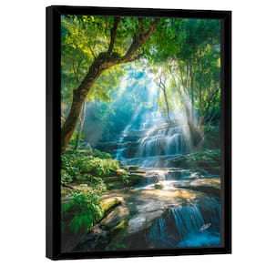 Quadro Decorativo Cachoeira Raios de Luz Moldura Branca e Vidro - 118x78cm -