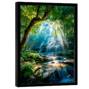 Quadro Decorativo Cachoeira Raios de Luz Moldura Preta - 118x78cm -
