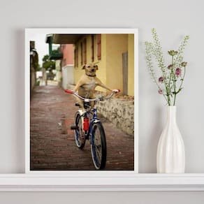 Quadro decorativo cachorro caramelo na bicicleta 45x34cm Cor: moldura preta Informações do produto tire todas as suas dúvidas no descritivo abaixo: decoração para quarto, sala, cozinha, escritório, área gourmet e muito mais. Chega de paredes vazias. Medidas - cada peça tem 45x34cm a3 . Material do papel - papel fotográfico brilhante de altíssima resolução acabamento - todos os quadros são acompanhados de uma película de acetato para proteção da imagem. - os quadros são embalados de forma segura com plástico bolha com camada dupla de acordo com o tamanho dos quadros. - de 3 meses. Meu quadro chegou. Como posso fixá-lo Você precisa apenas de um martelo e um prego, pois os quadros já vão acompanhados de penduradores. Esta é a forma mais indicada. Caso prefira, você pode utilizar uma fita dupla face neste caso, sugerimos de alta qualidade para evitar que descole e seu quadro caia . Como posso limpar meu quadro A limpeza é feita como um móvel comum da sua casa. Apenas um pano seco ou espanador são suficientes para tal Ean: 7901039753840