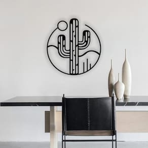 Especificações Técnicas: Medidas: comprimento: 39 cm altura: 3mm largura: 43 cm Material: mdf 3mm Cor: preto Tema: cacto Formas de instalação: basta utilizar fitas dupla face Quantidade: 1 unidade