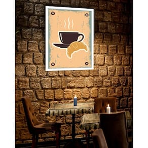 Quadro decorativo café croissant - 70x50cm Cor: moldura preta Informações do produto tire todas as suas dúvidas no descritivo abaixo: decoração para quarto, sala, cozinha, escritório, área gourmet e muito mais. Chega de paredes vazias medidas - cada peça tem 70x50cm . Material do papel - papel fotográfico brilhante de altíssima resolução acabamento - todos os quadros são acompanhados de vidro para proteção da imagem. - moldura em madeira maciça na cor preta ou branca conforme produto escolhido e pendurador. - os quadros são embalados de forma segura com plástico bolha com camada dupla de acordo com o tamanho dos quadros. - de 3 meses. Meu quadro chegou. Como posso fixá-lo Você precisa apenas de um martelo e um prego, pois os quadros já vão acompanhados de penduradores. Esta é a forma mais indicada. Como posso limpar meu quadro A limpeza é feita como um móvel comum da sua casa. Apenas um pano seco ou espanador são suficientes para tal Marca: Não Informado