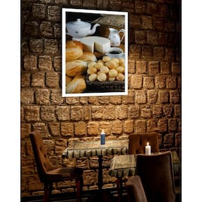 Quadro decorativo café da manhã roça - 70x50cm Cor: moldura preta Informações do produto tire todas as suas dúvidas no descritivo abaixo: decoração para quarto, sala, cozinha, escritório, área gourmet e muito mais. Chega de paredes vazias medidas - cada peça tem 70x50cm . Material do papel - papel fotográfico brilhante de altíssima resolução acabamento - todos os quadros são acompanhados de vidro para proteção da imagem. - moldura em madeira maciça na cor preta ou branca conforme produto escolhido e pendurador. - os quadros são embalados de forma segura com plástico bolha com camada dupla de acordo com o tamanho dos quadros. - de 3 meses. Meu quadro chegou. Como posso fixá-lo Você precisa apenas de um martelo e um prego, pois os quadros já vão acompanhados de penduradores. Esta é a forma mais indicada. Como posso limpar meu quadro A limpeza é feita como um móvel comum da sua casa. Apenas um pano seco ou espanador são suficientes para tal Marca: Não Informado Ean: 7901039770267