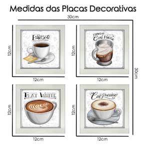 Quadro Decorativo Café Expresso Padaria Cozinha 12x12cm 2 Título Moldura Branca