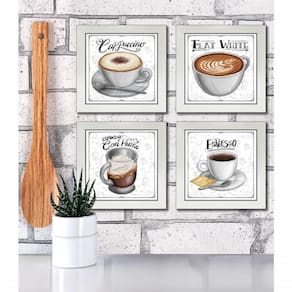Quadro Decorativo Café Expresso Padaria Cozinha 12X12Cm 2 Título Moldura Branca