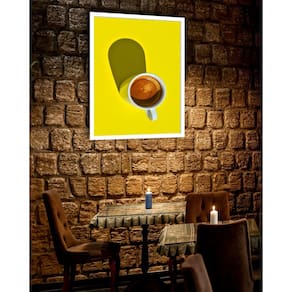 Quadro decorativo café foto amarelo - 70x50cm Cor: moldura preta Informações do produto tire todas as suas dúvidas no descritivo abaixo: decoração para quarto, sala, cozinha, escritório, área gourmet e muito mais. Chega de paredes vazias medidas - cada peça tem 70x50cm . Material do papel - papel fotográfico brilhante de altíssima resolução acabamento - todos os quadros são acompanhados de vidro para proteção da imagem. - moldura em madeira maciça na cor preta ou branca conforme produto escolhido e pendurador. - os quadros são embalados de forma segura com plástico bolha com camada dupla de acordo com o tamanho dos quadros. - de 3 meses. Meu quadro chegou. Como posso fixá-lo Você precisa apenas de um martelo e um prego, pois os quadros já vão acompanhados de penduradores. Esta é a forma mais indicada. Como posso limpar meu quadro A limpeza é feita como um móvel comum da sua casa. Apenas um pano seco ou espanador são suficientes para tal Marca: Não Informado
